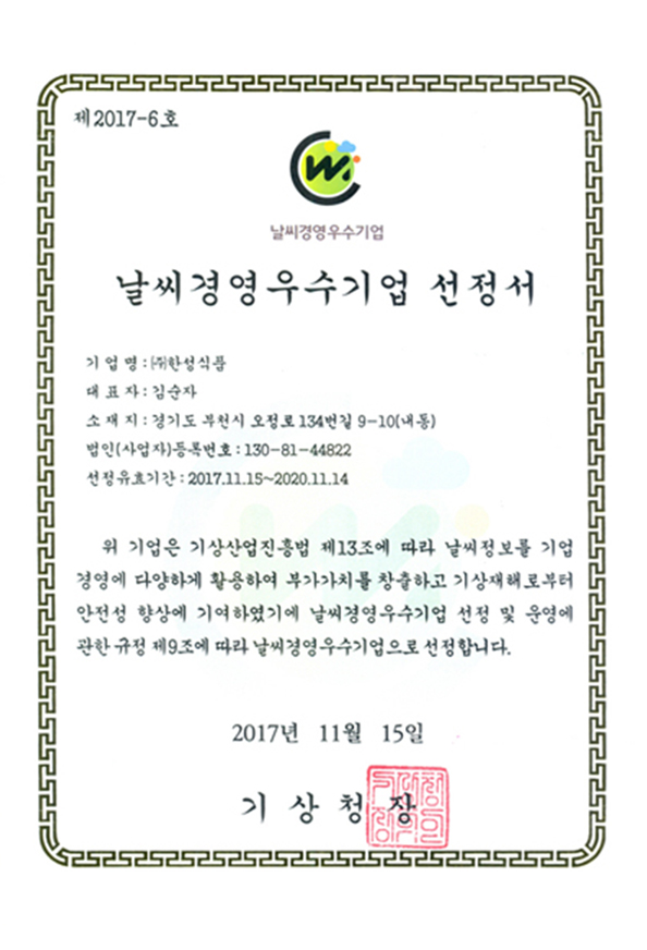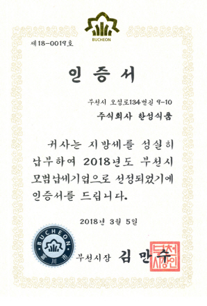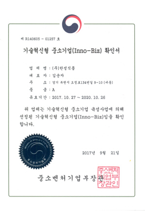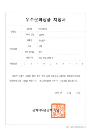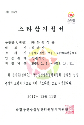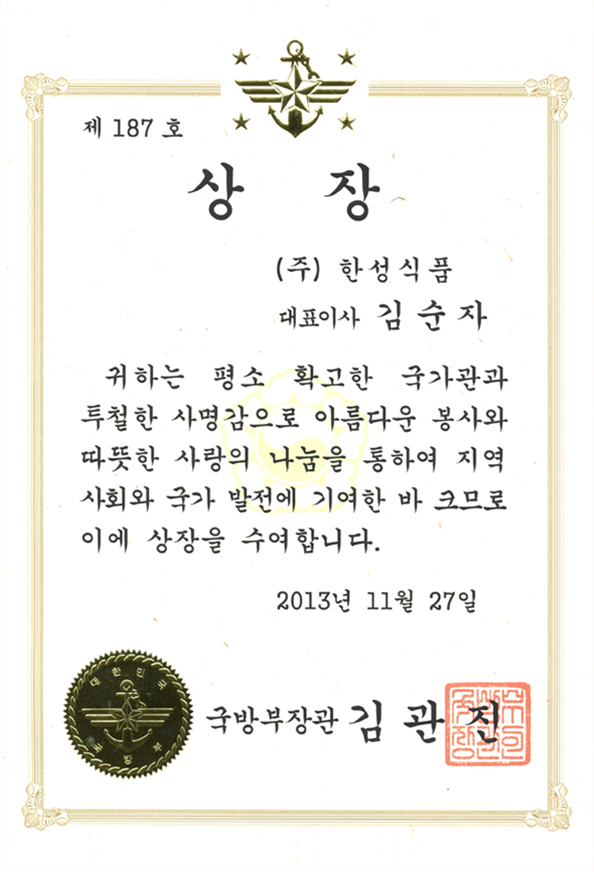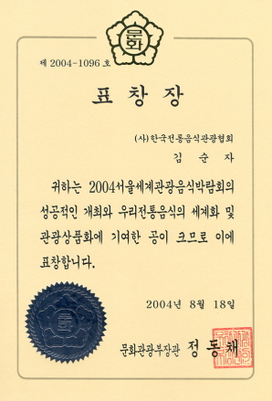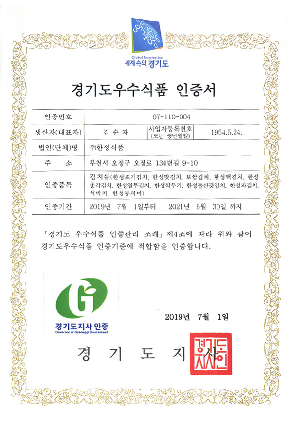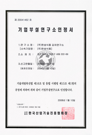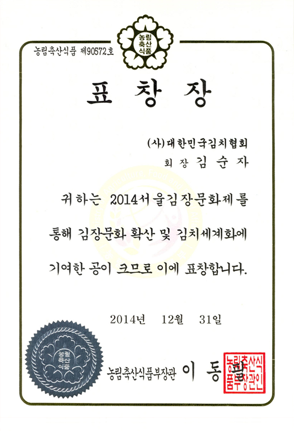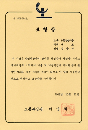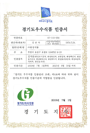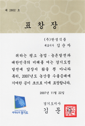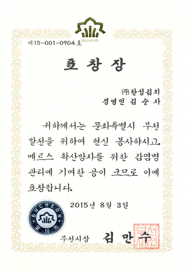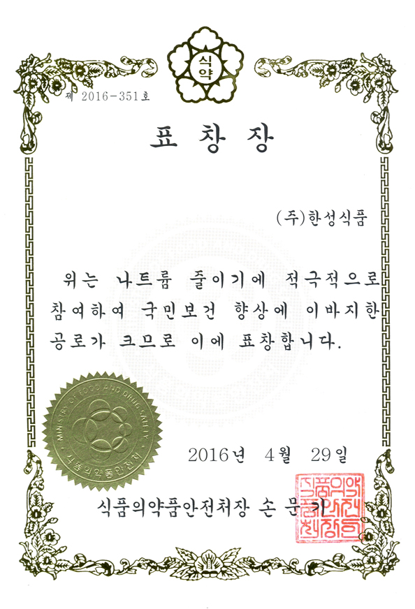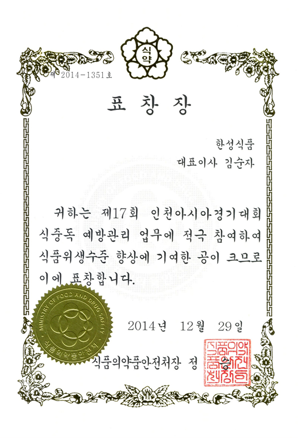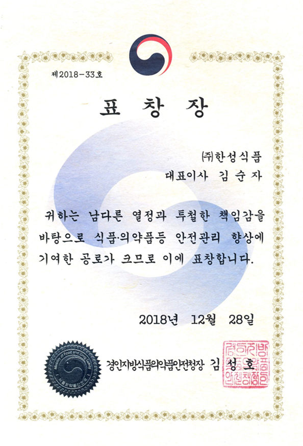 Commendation by Head of Gyeongin Regional Food & Drug Administration