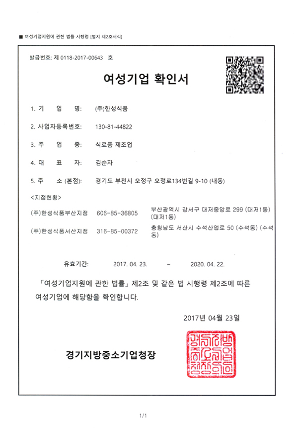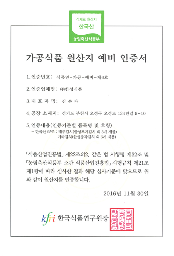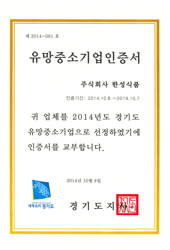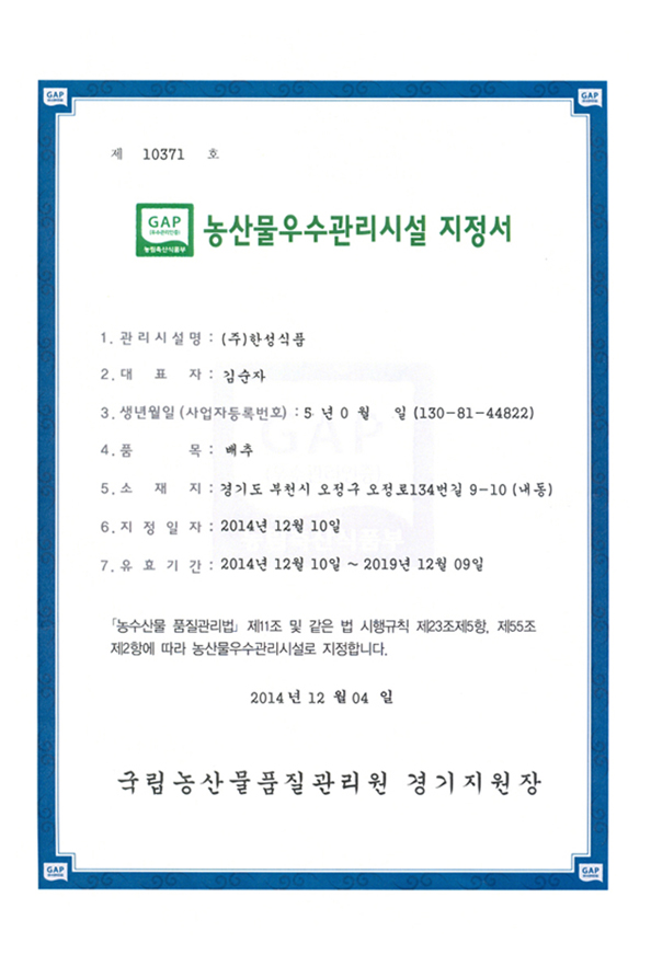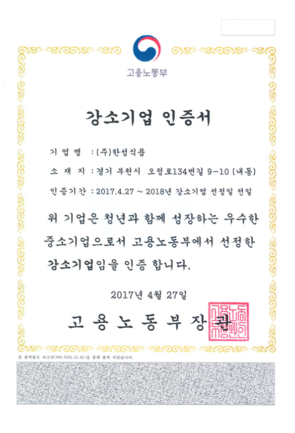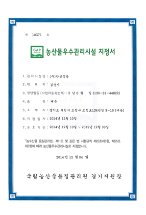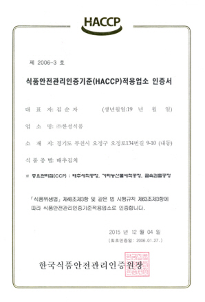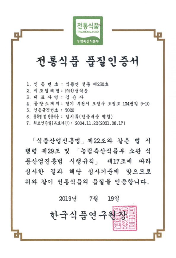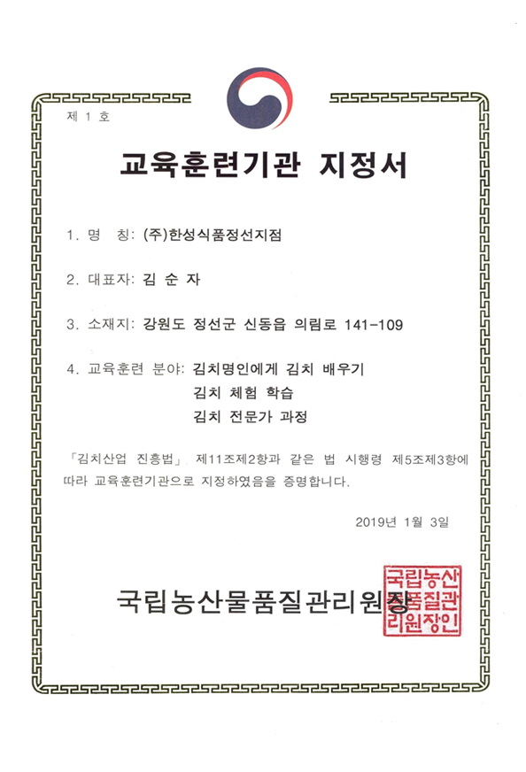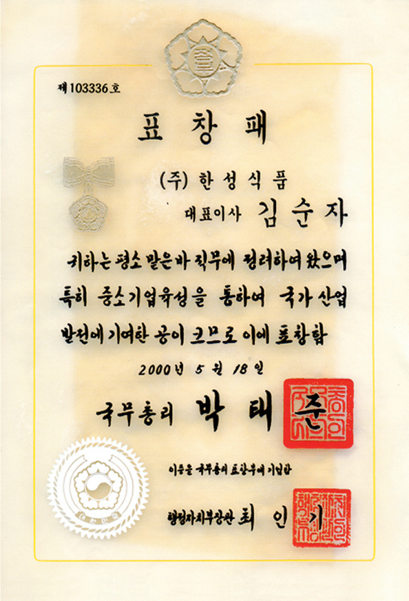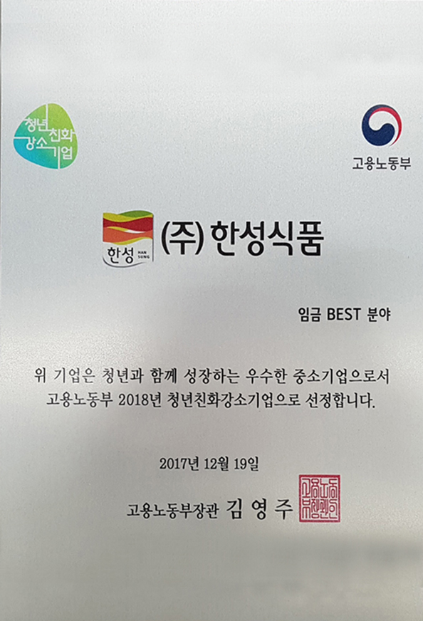 Commendation by Head of Gyeongin Regional Food & Drug Administration