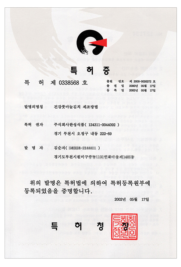 | 8 | 2002. 10. 22 | 0359471 | 얼열김치 제조방법 |